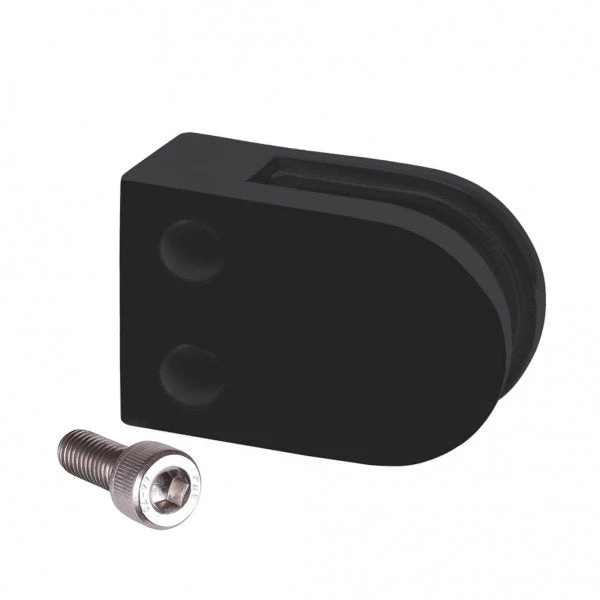 Round cast aluminium glass clamp with flat back in a black sand finish to suit 10mm glass to be used alongside our Fortitude Contemplation posts.Â