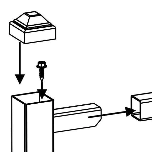 Where a gate required, a railing panel can be used with Fortress gate kits to create a custom gate. Each set includes two uprights, two pressed dome caps and the self-tapping screws needed to attach the panel securely to the uprights.