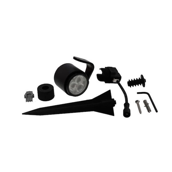 This small spotlight is delivered with a bracket and ground stake. This makes the fixture suitable for mounting on, for example, a fence or in an overhang, and to illuminate plants and shrubs in the border