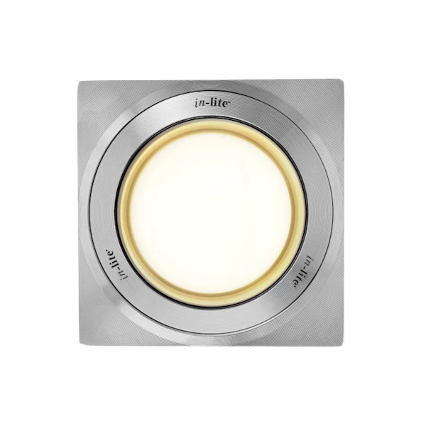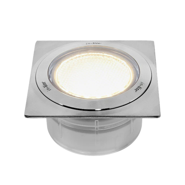 Stainless steel cover plate 75 x 75 mm. Gives various ground spotlights an austere look. Suitable for constructing in terraces and pallets, for example.