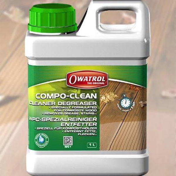 Compo-Clean does not contain solvents or paraffin. This product is a perfect cleaning agent to use before applying Owatrol’s Compo-Care, a transparent tinted coating designed specifically for use on composite wood.