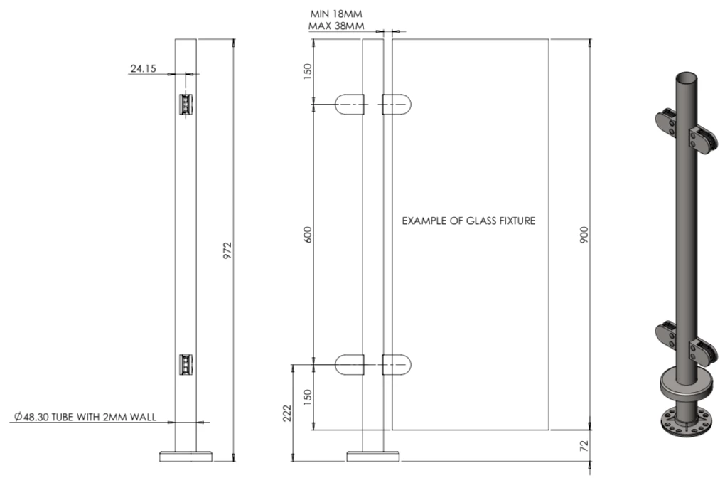 DSM Pre-Assembled Stainless Steel Balustrade Posts – Mid post.