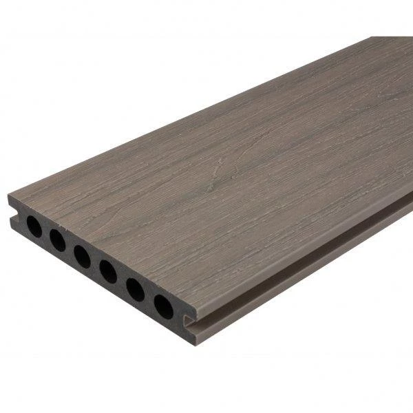 Our Wood Plastic Composite (WPC) Rinato Natural boards are double sided with a hollow core. On one side the boards feature an enhanced natural woodgrain effect and on the other a traditional flat sanded effect. FSC® certified Natural Capstock composite deck boards are made from a combination of 60% recycled wood and 40% recycled polypropylene, making it a greener option for your garden. Just like wood, our composite deck boards look and feel incredibly natural with a consistent colour and texture. As well as being environmentally friendly, Rinato Natural is virtually maintenance free, it is incredibly durable and will remain so for years to come, and thanks to its composite properties, it is suitable for a variety of outdoor uses. Rinato natural features a 360 degree wrap around Polymer Capstock shield that encapsulates the board and gives it year-round protection against the elements and protects from excessive UV fading.